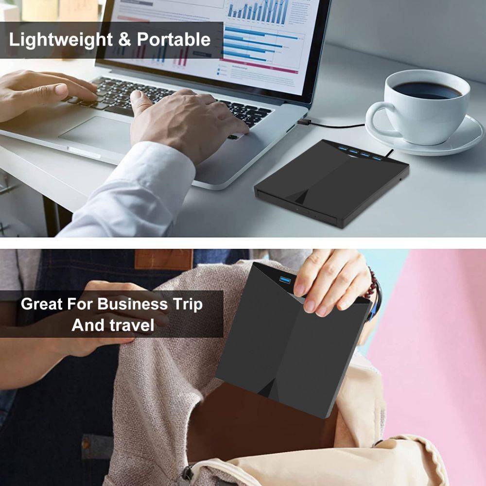 Our portable DVD player is not only a CD/DVD reader, but also a CD/DVD burner/burner, 4 port USB 3.0 hub, SD card reader, TF card reader (SD card and TF card are not used at the same time).